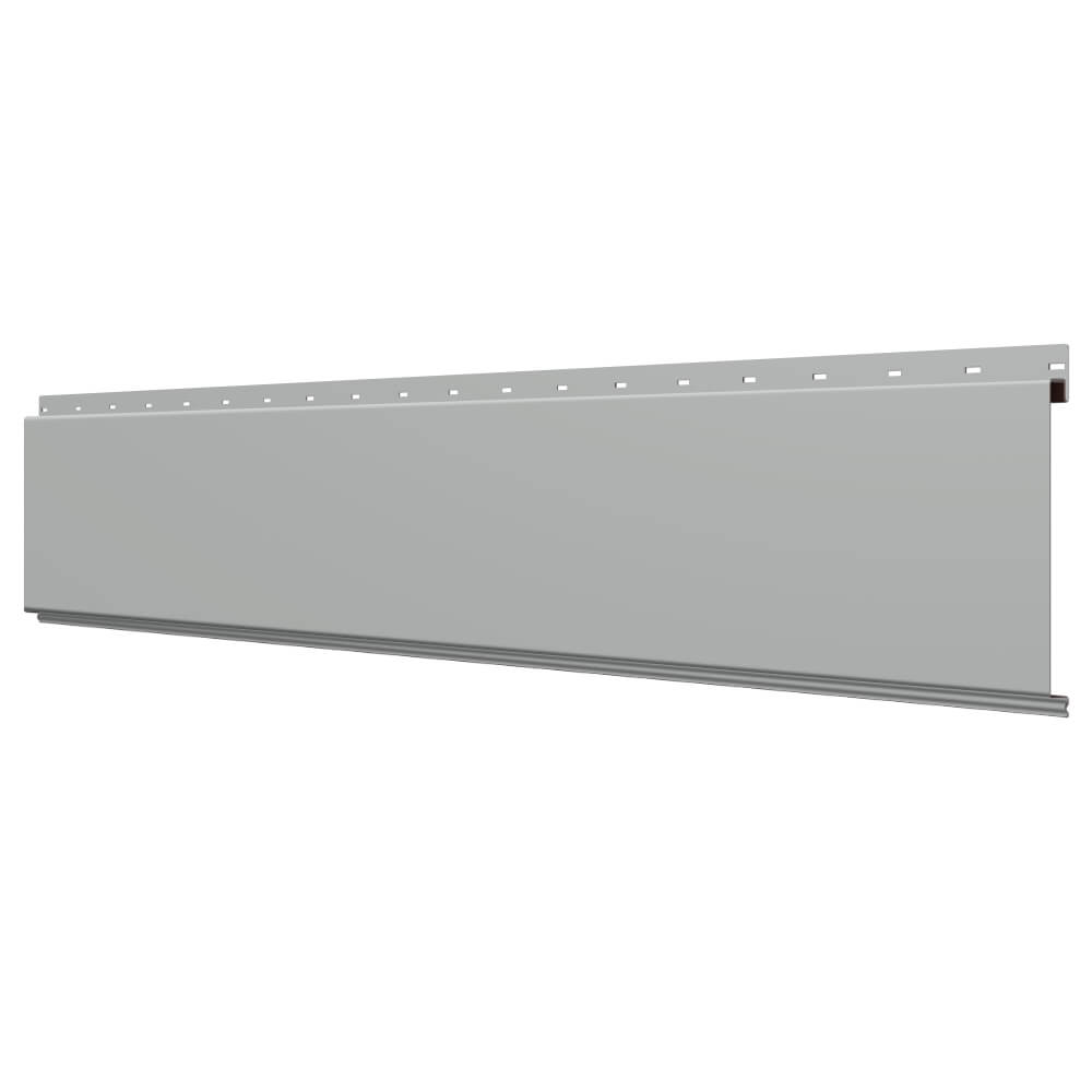 Линеарная потолочно-стеновая панель ГЛАДКАЯ цвет RAL9006 Серебро применяется в качестве софитов для подшивы крыши, наружной и внутренней отделки потолков, стен, фронтонов фасада дома в Белгороде.