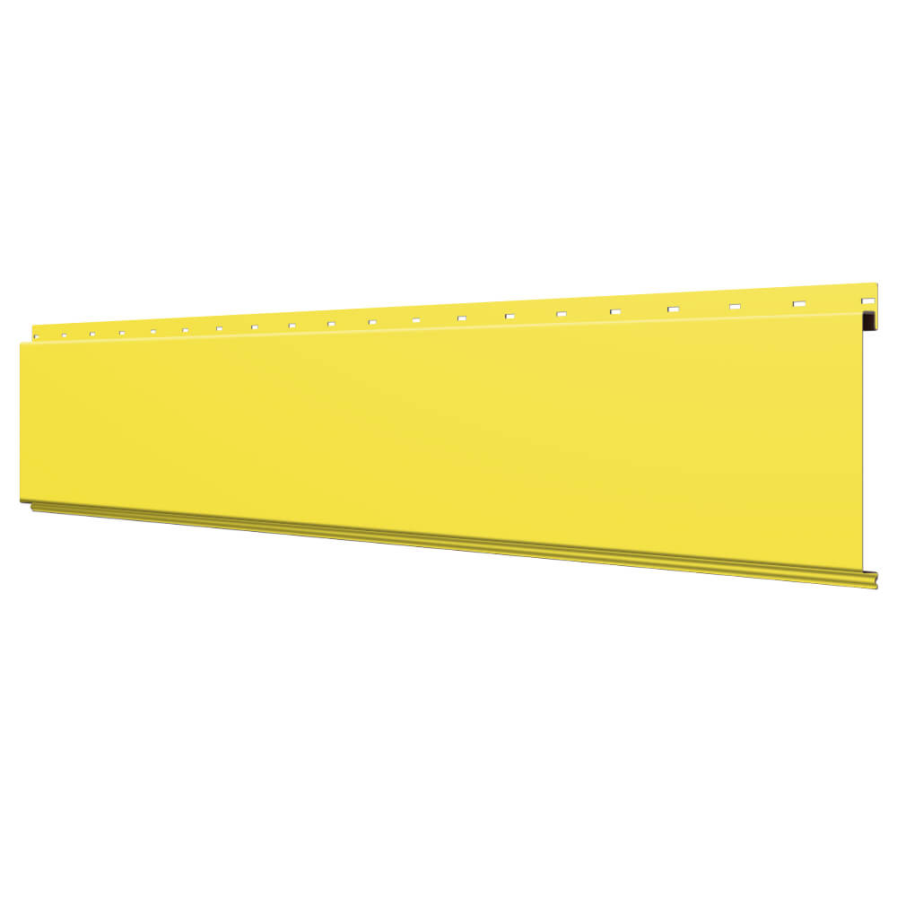 Линеарная потолочно-стеновая панель ГЛАДКАЯ цвет RAL1018 Желтый применяется в качестве софитов для подшивы крыши, наружной и внутренней отделки потолков, стен, фронтонов фасада дома в Белгороде.