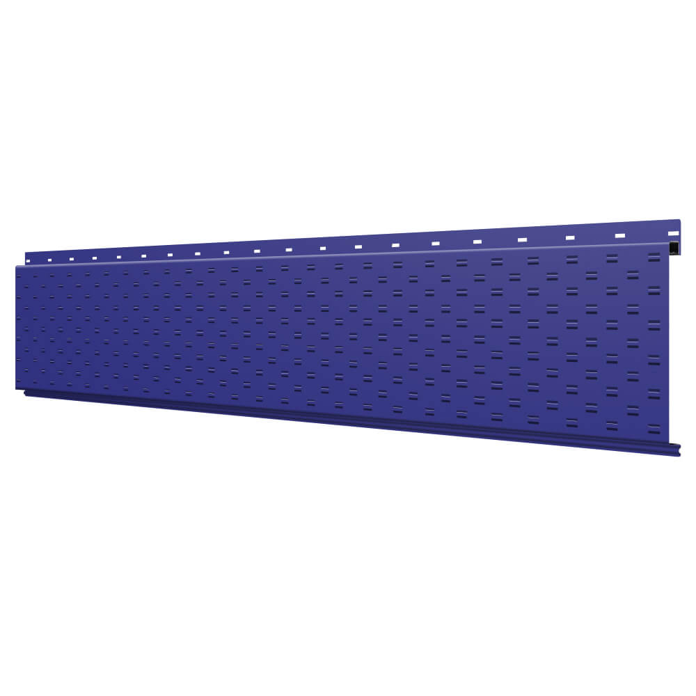 Линеарная потолочно-стеновая панель с ПЕРФОРАЦИЕЙ для вентиляции цвет RAL5002 Синий Ультрамарин применяется в качестве софитов для подшивы крыши, наружной и внутренней отделки потолков, стен, фронтонов фасада дома в Белгороде.