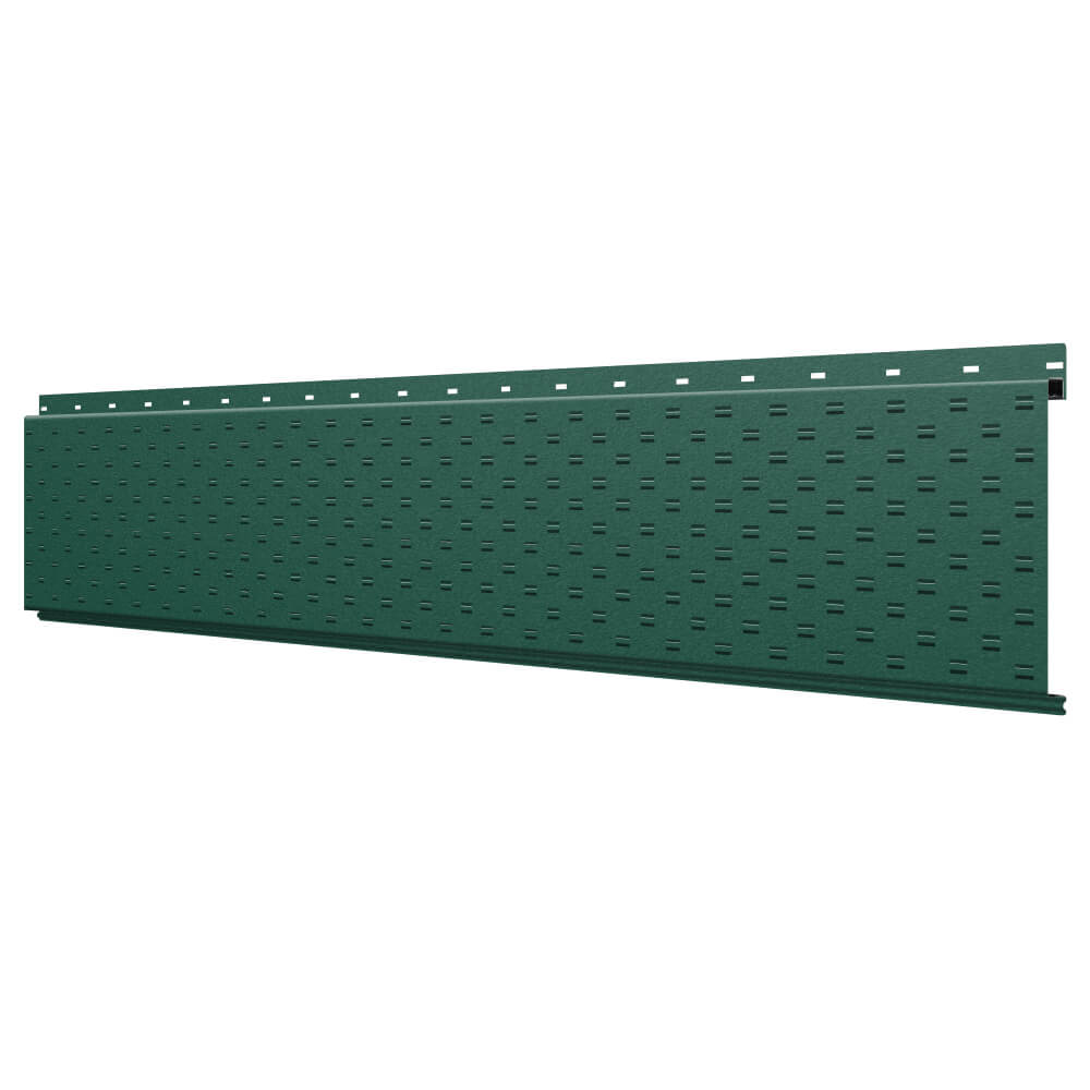 Линеарная потолочно-стеновая панель с ПЕРФОРАЦИЕЙ для вентиляции цвет RAL6005 Зеленый Мох Стальной Бархат применяется в качестве софитов для подшивы крыши, наружной и внутренней отделки потолков, стен, фронтонов фасада дома в Белгороде.