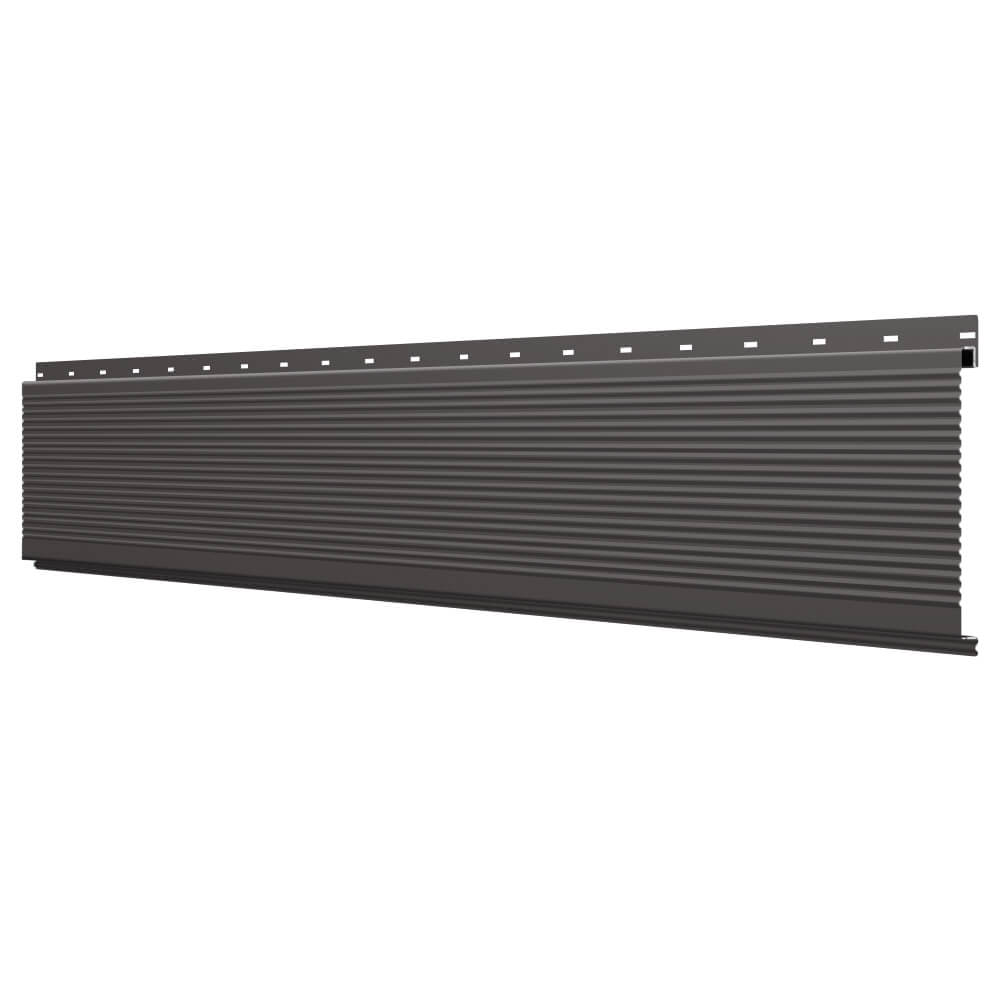 Линеарная потолочно-стеновая панель РИФЛЕНАЯ усиленная цвет RAL8019 Темный Шоколад применяется в качестве софитов для подшивы крыши, наружной и внутренней отделки потолков, стен, фронтонов фасада дома в Белгороде.