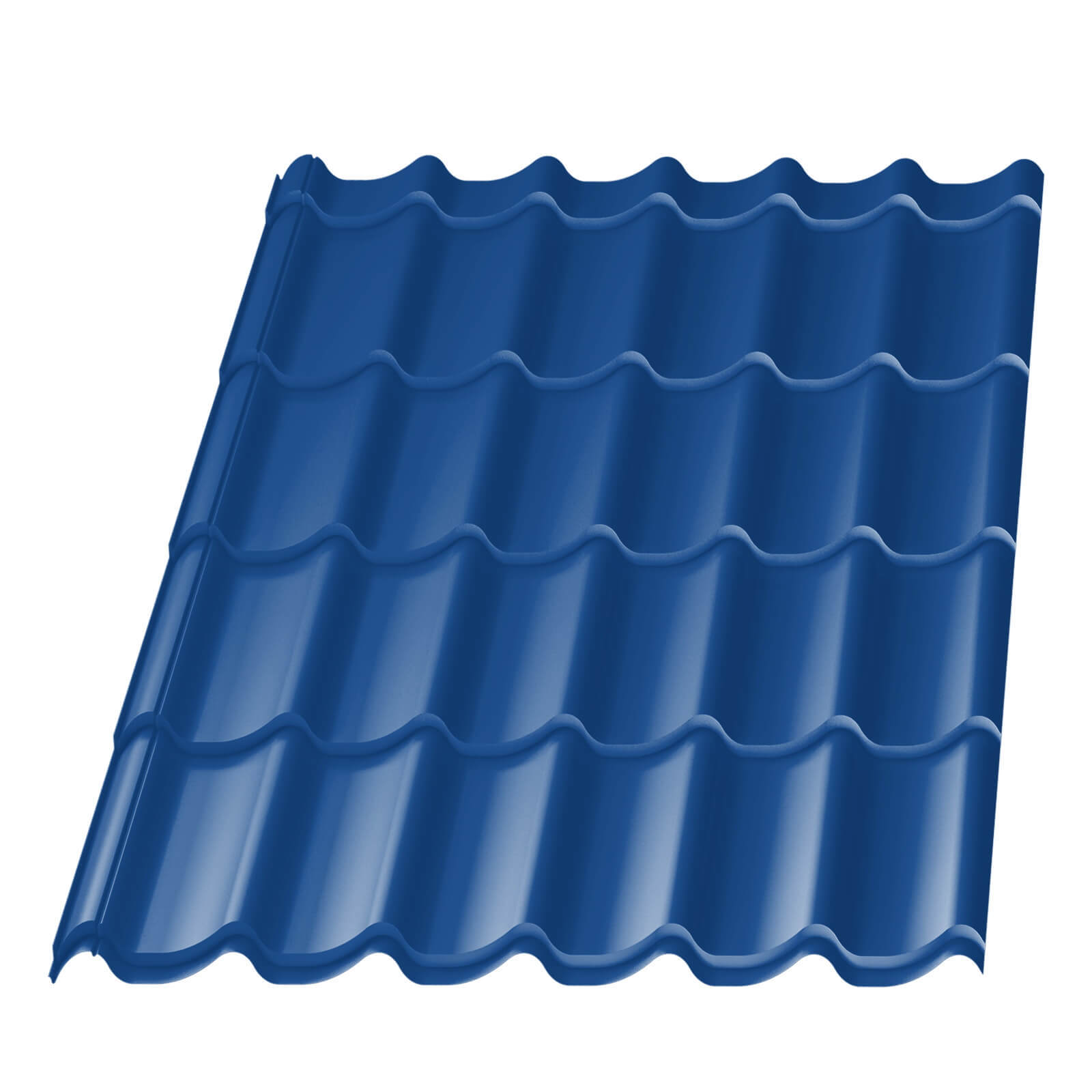 Металлическая черепица Меркурий цвет RAL 5002 Синий Сигнал имеет профиль внешне на кровле напоминающий классическую керамическую черепицу. Меркурий — это обновленный аналог профиля металлической черепицы для кровли крыши. Форма профиля имеет богатый внешний вид напоминающий небольшие набегающие волны. Лучшие показатели герметизации сделали профиль Меркурий гарантом стабильной и долговременной службы на крышах в Белгороде. Данный профиль отличается не только своим качеством и практичностью, но и благородным внешним видом.