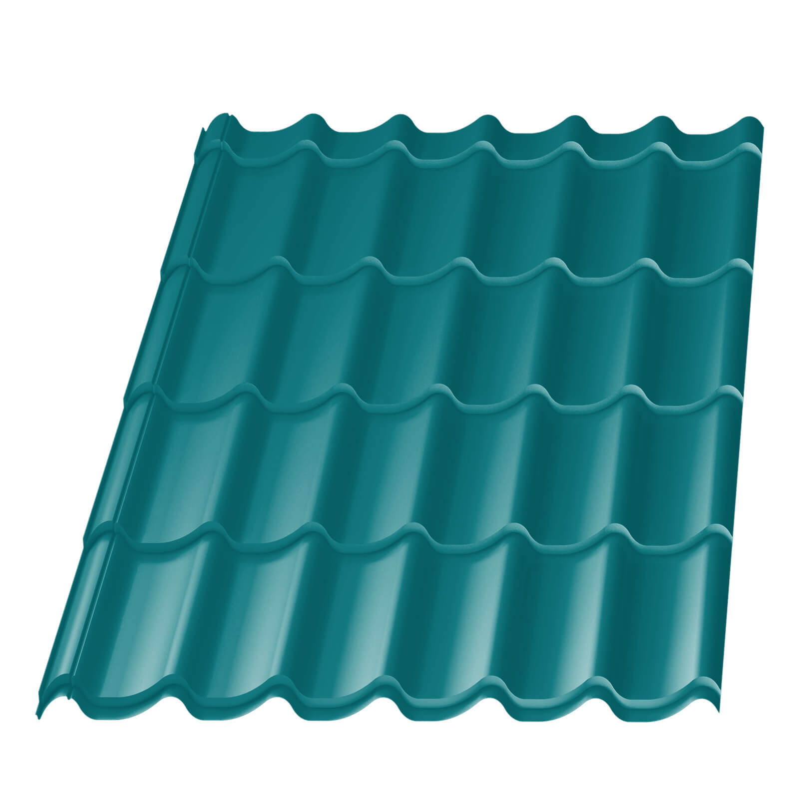 Металлическая черепица Меркурий цвет RAL 5021 Морская Волна имеет профиль внешне на кровле напоминающий классическую керамическую черепицу. Меркурий — это обновленный аналог профиля металлической черепицы для кровли крыши. Форма профиля имеет богатый внешний вид напоминающий небольшие набегающие волны. Лучшие показатели герметизации сделали профиль Меркурий гарантом стабильной и долговременной службы на крышах в Белгороде. Данный профиль отличается не только своим качеством и практичностью, но и благородным внешним видом.