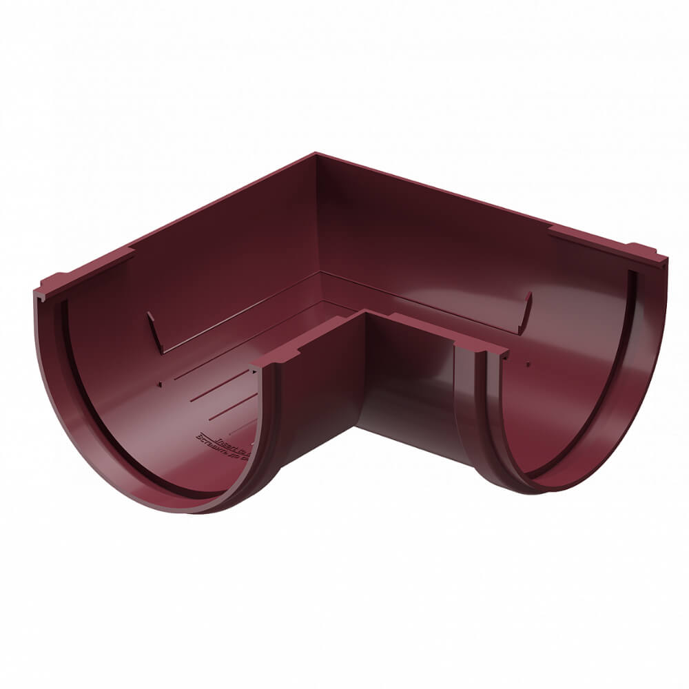 Угловой элемент желоба универсальный ДЕКЕ STANDARD d120мм 90 градусов цвет RAL 3005 Красный в Белгороде. Угловые элементы устанавливаются как на внешних, так и на внутренних углах кровли и предназначены для соединения желобов.