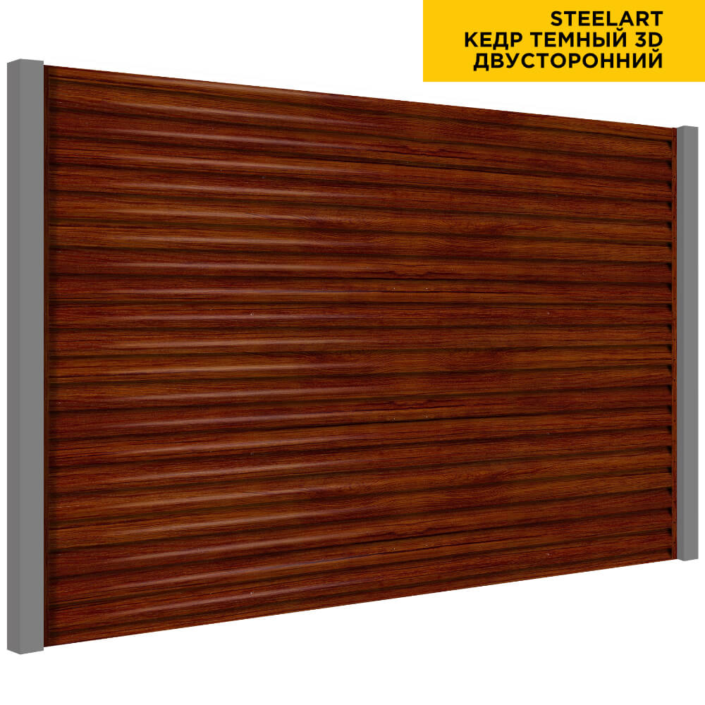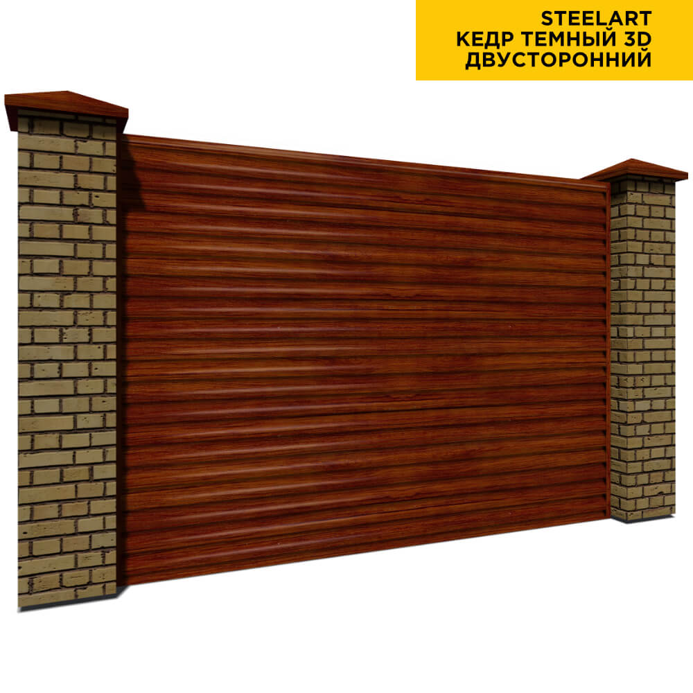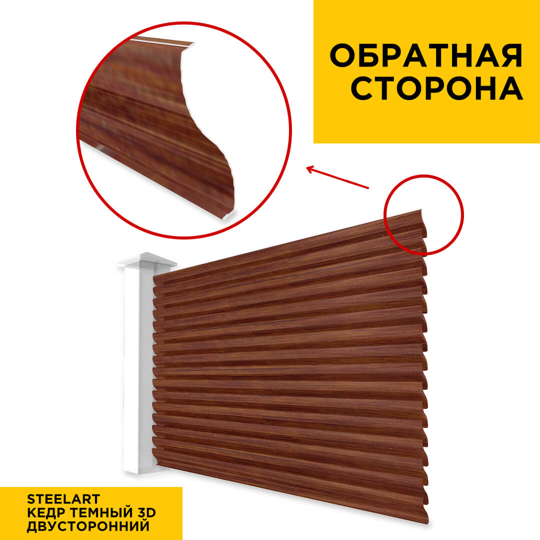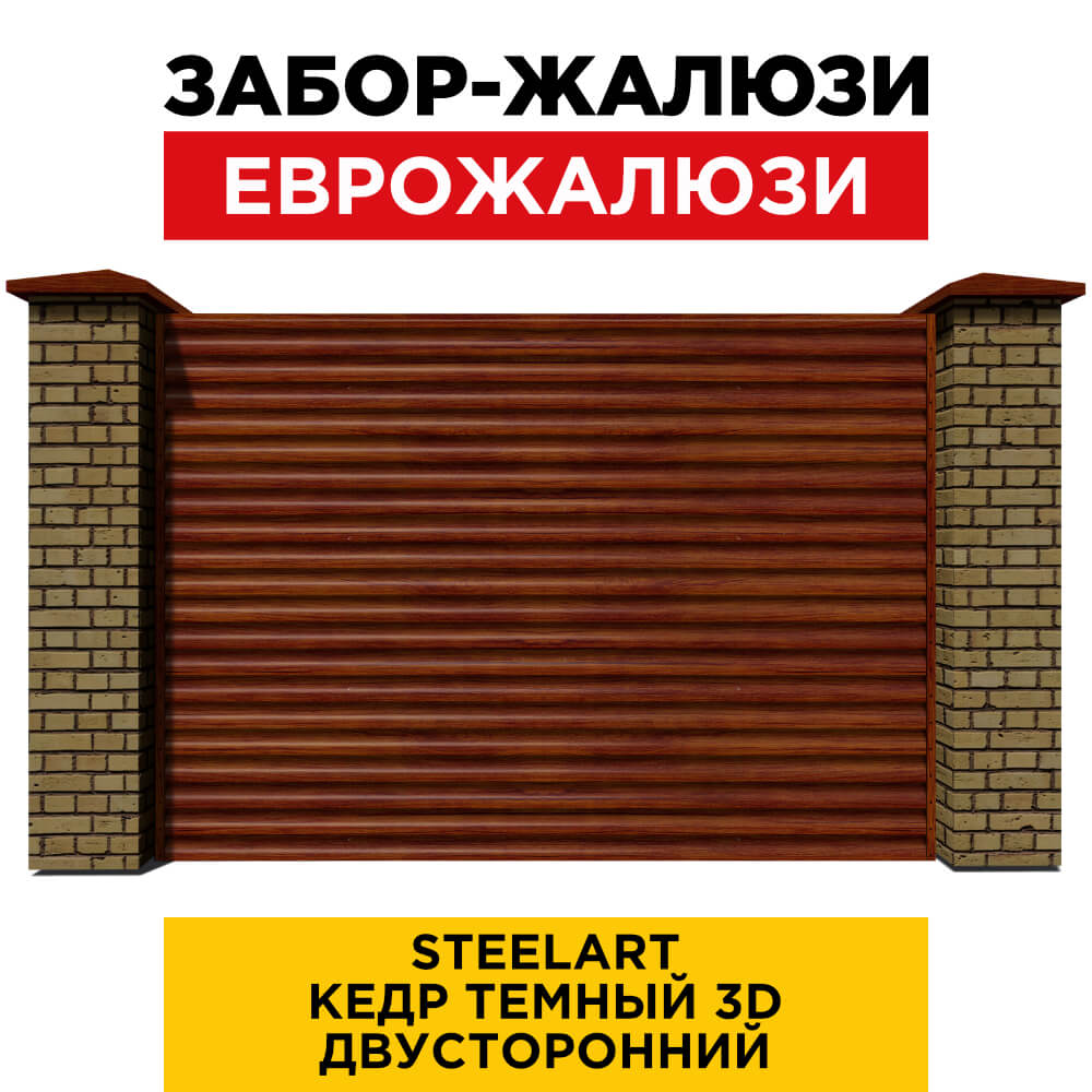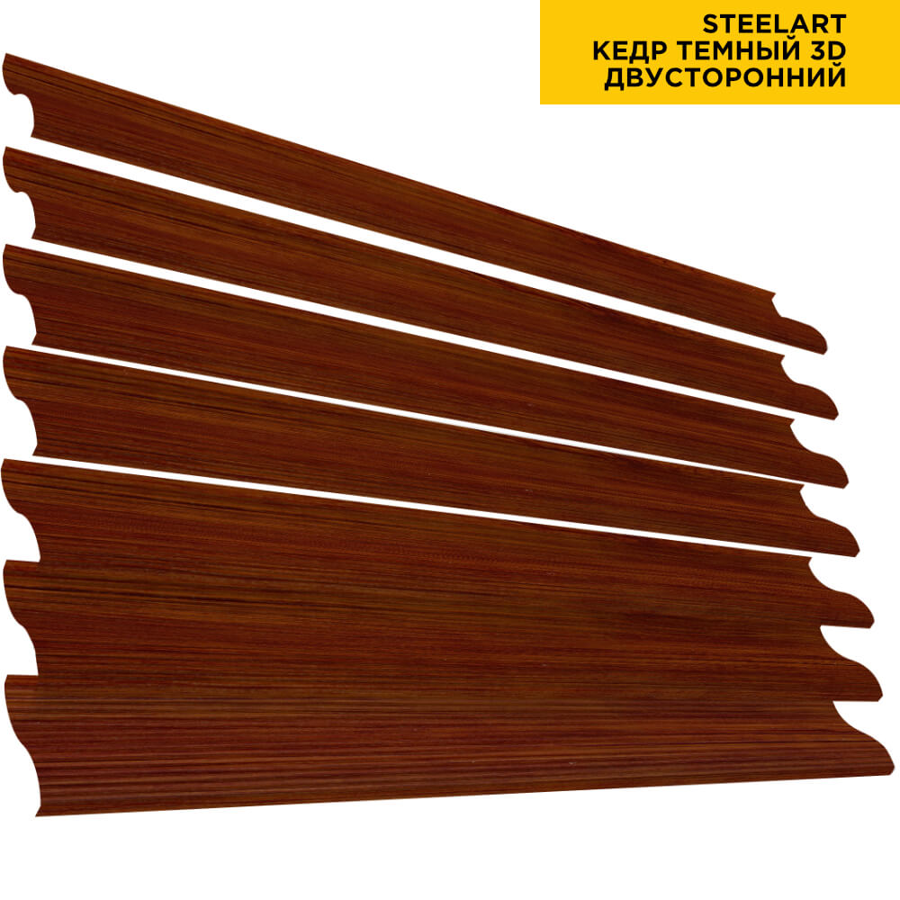 Ламель Еврожалюзи металлическая S-образная, цвет под дерево Кедр Темный 3D SteelArt Россия двухстороннее покрытие, длина любая кратно 1см под заказ - для забора-жалюзи, беседки, перголы в Белгороде