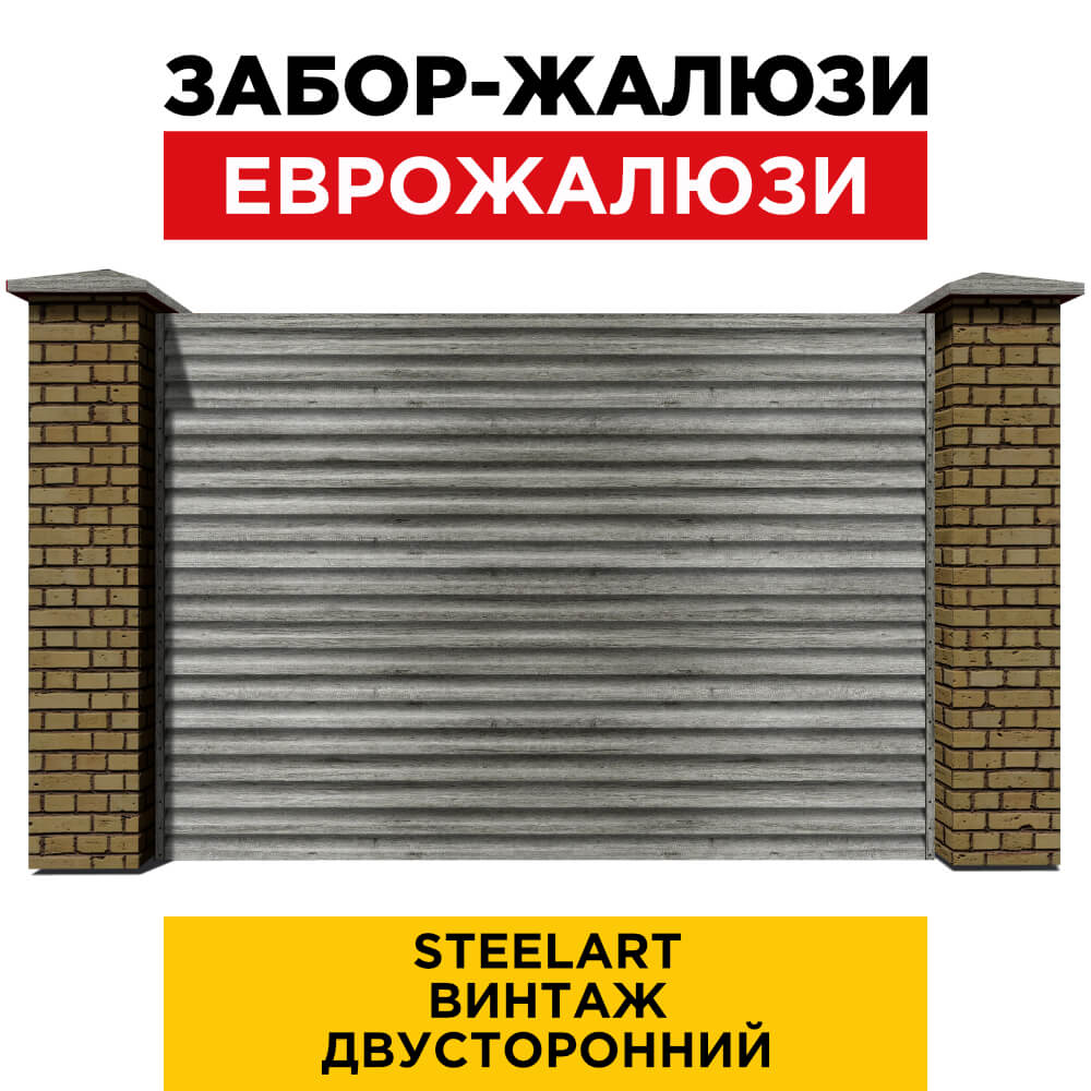 Ламель Еврожалюзи металлическая S-образная, цвет под дерево Винтаж SteelArt Россия двухстороннее покрытие, длина любая кратно 1см под заказ - для забора-жалюзи, беседки, перголы в Белгороде