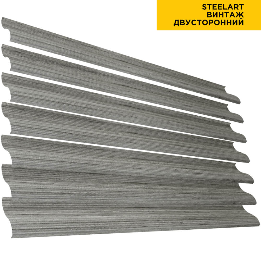 Ламель Еврожалюзи металлическая S-образная, цвет под дерево Винтаж SteelArt Россия двухстороннее покрытие, длина любая кратно 1см под заказ - для забора-жалюзи, беседки, перголы в Белгороде.