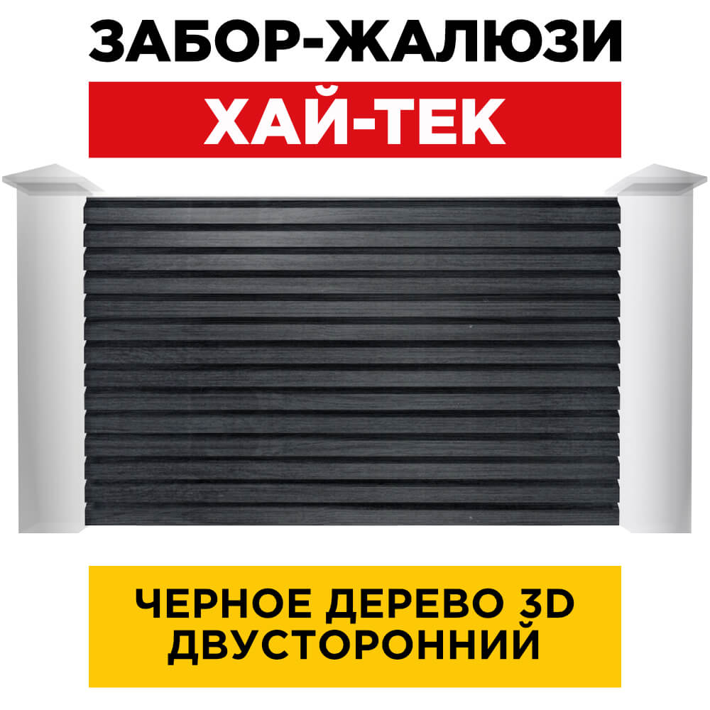 Ламель ХАЙ-ТЕК цвет Черное Дерево 3D Принтек двусторонняя для красивого современного забора-жалюзи