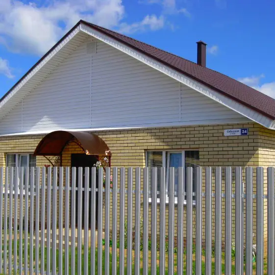 Надёжность, стиль и гармония — забор из металлического штакетника Узкий RAL 7004 Серый в покрытии полиэстер односторонний подчёркивает архитектуру коттеджного посёлка, конструкция обеспечивает безопасность и долговечность. Это не просто забор — это элегантная деталь, которая делает территорию завершённой и вызывает чувство уверенности с первого взгляда.
