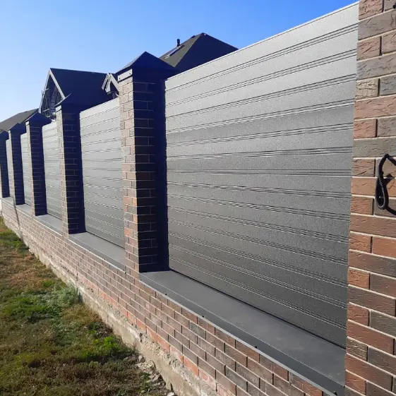 Забор ранчо, выполненный из металлического планкена в оттенке RAL7024 МАТТЕ «Серый графит». Матовая поверхность придаёт конструкции стильный и лаконичный внешний вид, органично сочетающийся как с современными, так и с классическими архитектурными решениями. Такой забор отличается прочностью, долговечностью и простотой ухода, подчёркивая статус и гармоничность всего пространства вокруг дома.